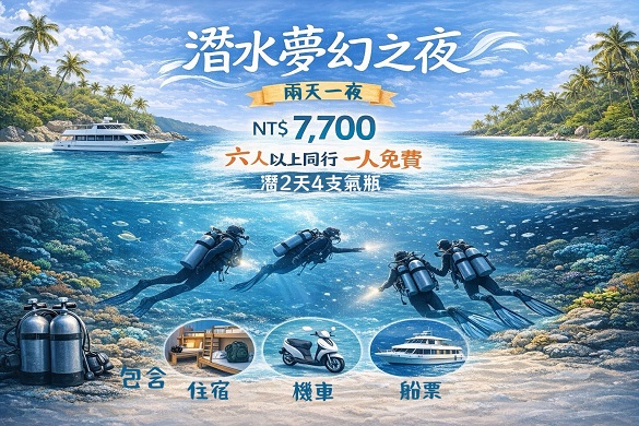 潛水夢幻之夜 六人同行,一人免費
